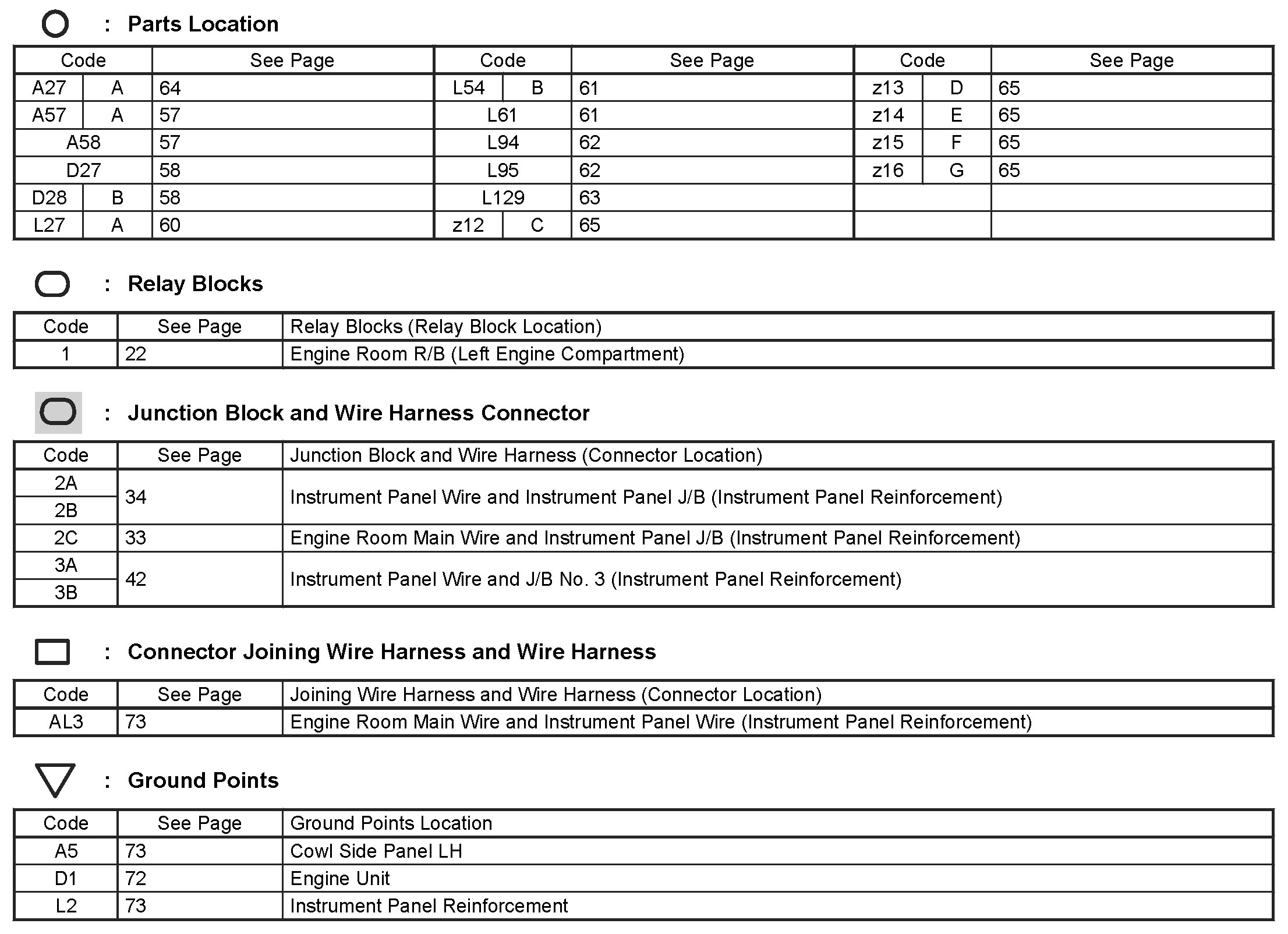 Locations: The locations of components, connectors, ground points, and splices referred to within these diagrams can be found at Vehicle Locations. Locations