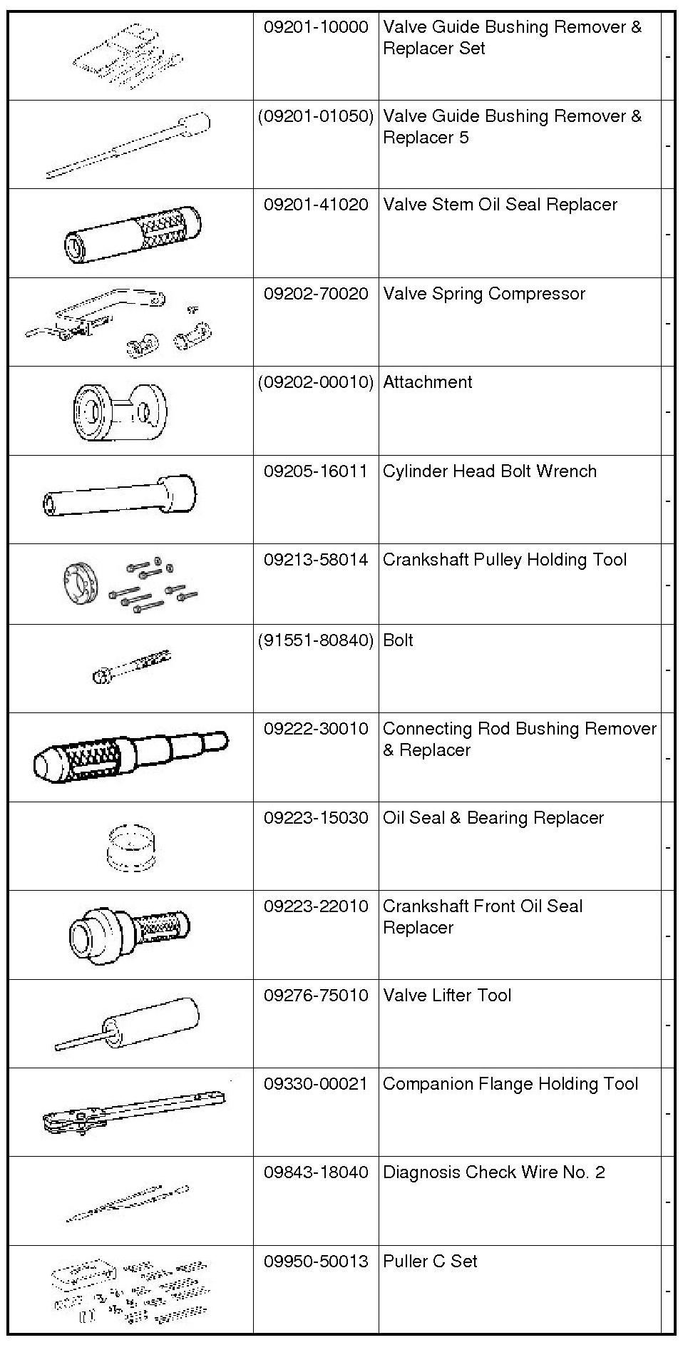 PREPARATION: 2ZR-FXE ENGINE MECHANICAL: SST