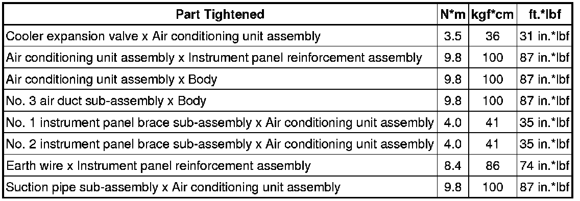 SPECIFICATIONS: HEATING / AIR CONDITIONING: TORQUE SPECIFICATIONS