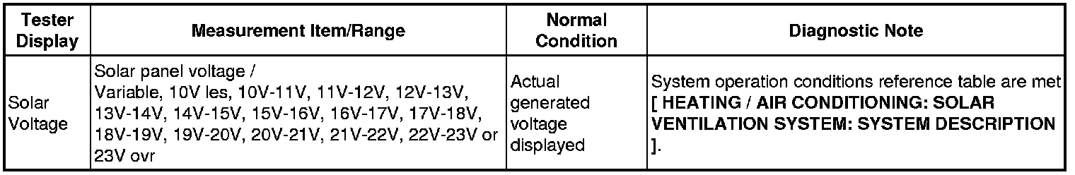 If the Data List items are not displayed, inspect the communication circuit between the solar ventilation ECU and A/C amplifier Communication Circuit Between Solar Ventilation ECU And A/C Amplifier.