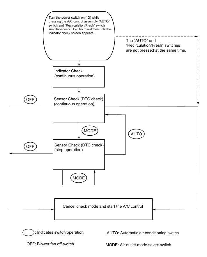 (a) By operating each of the air conditioning control switches as shown in the diagram below, it is possible to enter diagnostic check mode.