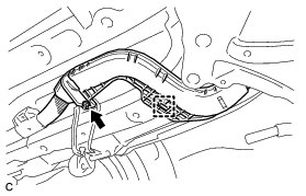 (l) Install the wire harness protector and connect the clamp to the floor panel.