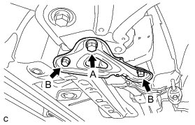 (a) Install the front suspension member brace rear RH with the new bolt (A) and 2 bolts (B).