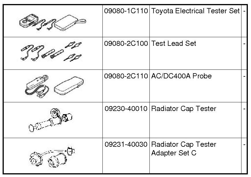 PREPARATION: HYBRID / BATTERY CONTROL: RECOMMENDED TOOLS