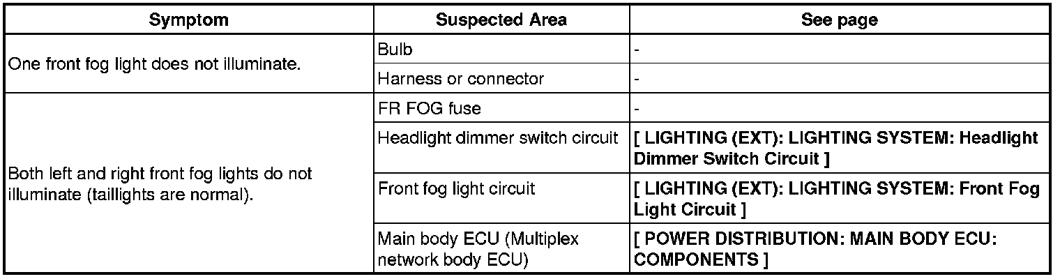 LIGHTING (EXT): LIGHTING SYSTEM: PROBLEM SYMPTOMS TABLE