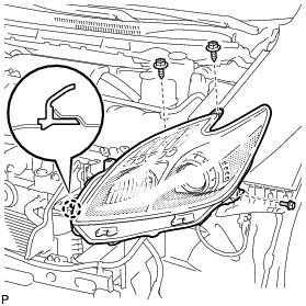 (d) Install the headlight assembly with the bolt and 2 screws.
