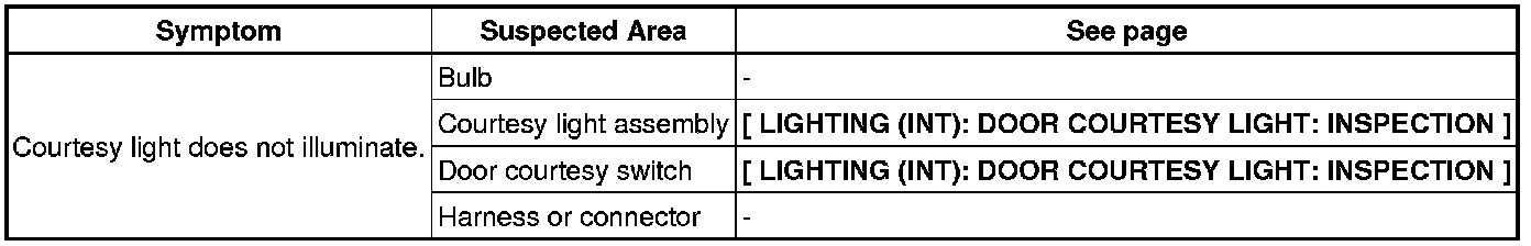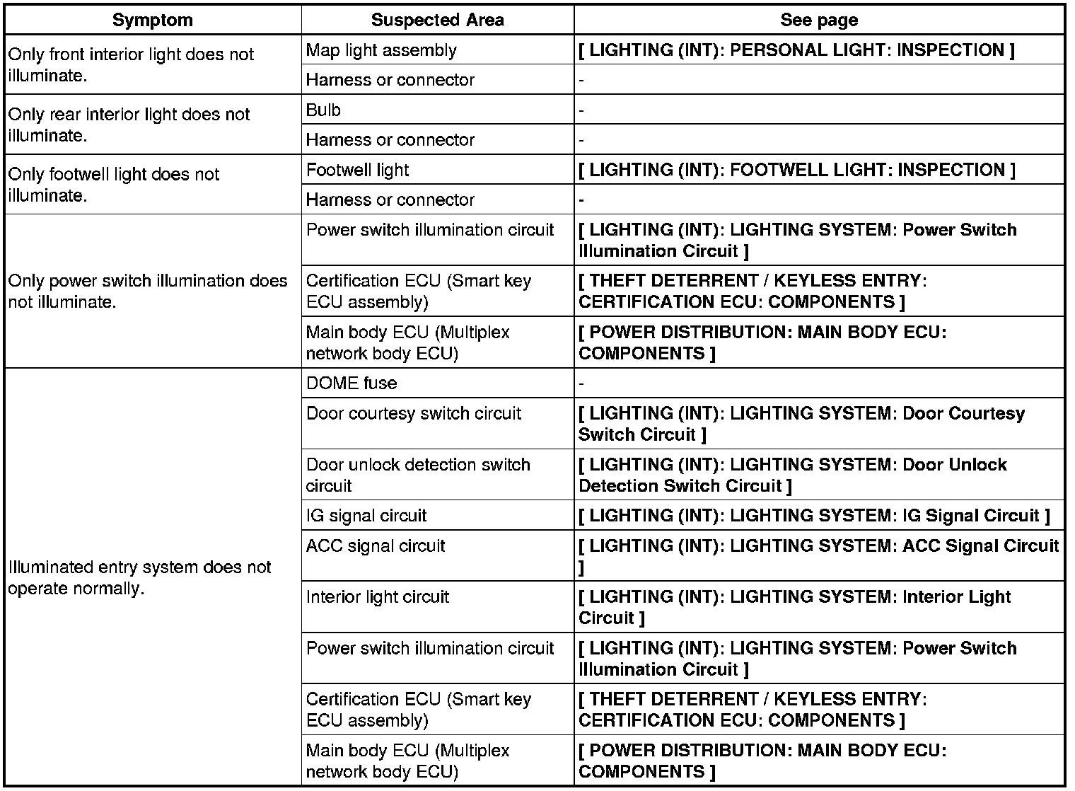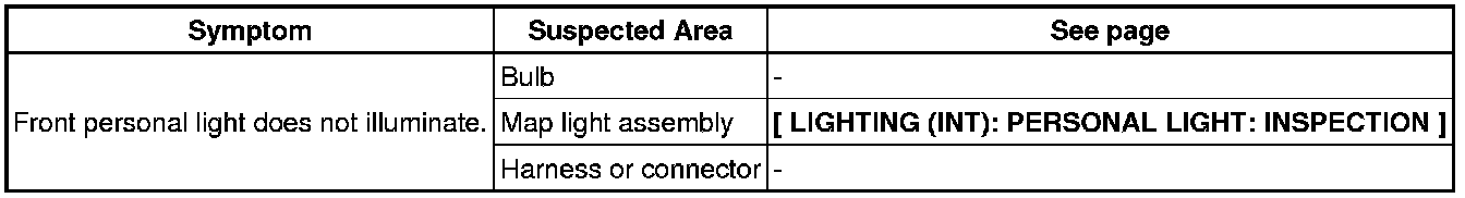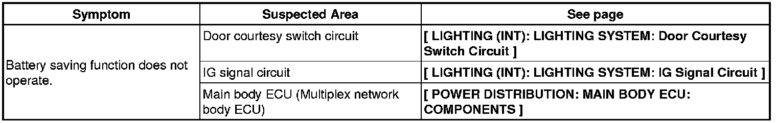 LIGHTING (INT): LIGHTING SYSTEM: PROBLEM SYMPTOMS TABLE