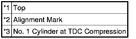 Timing Component Alignment MarksThere are no marks on the cylinder head to match-up for the purpose of checking valve timing. Valve timing can only be inspected by lining up the colored plates on the timing chain with the marks on the pulleys. It may be necessary to remove and reinstall the chain to match-up the alignment marks Disassembly.