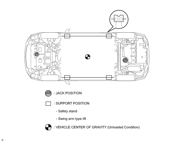 (c) Set the jack and safety stands exactly under the specified locations on the vehicle.
