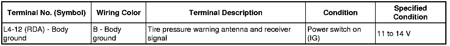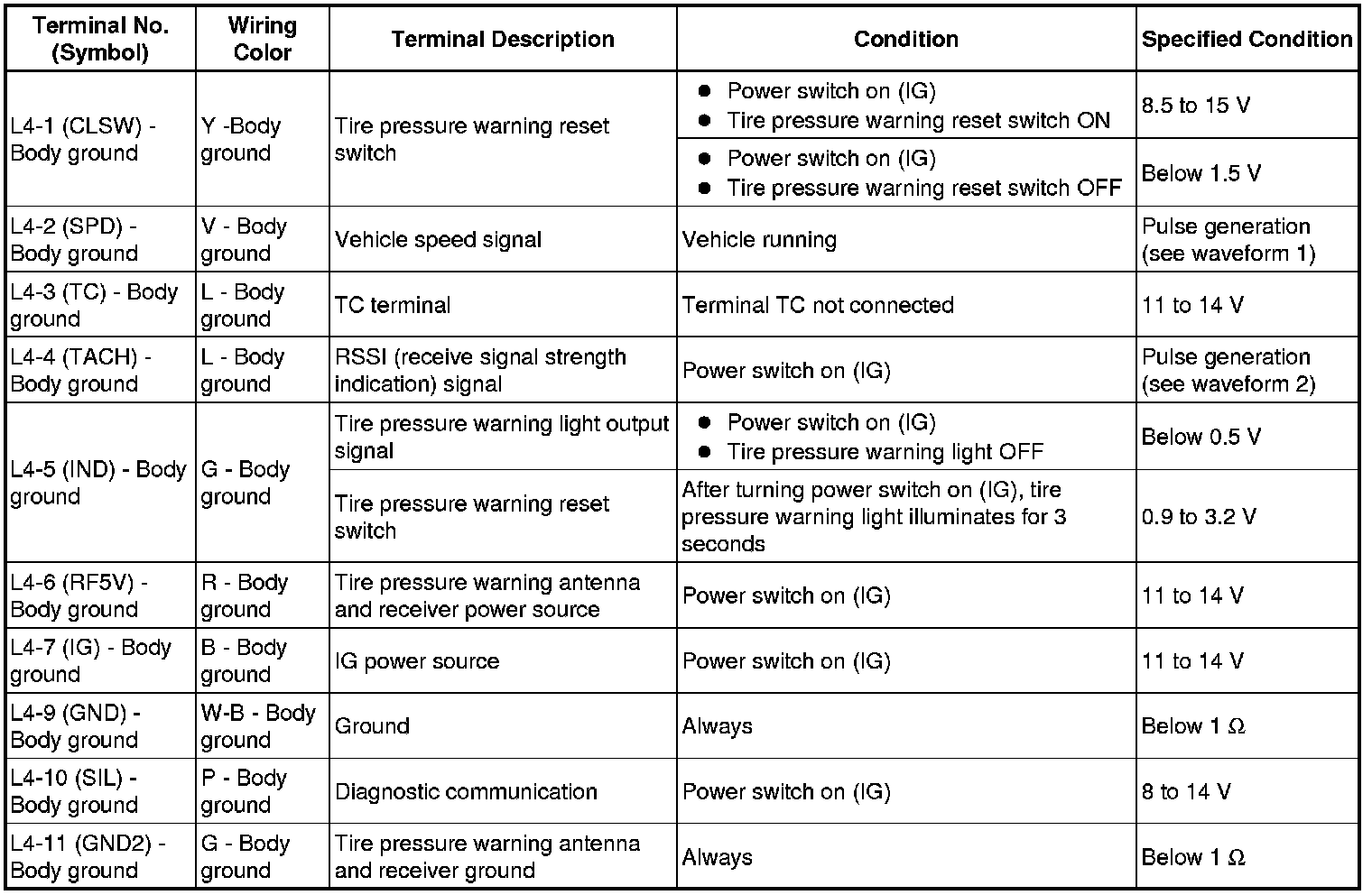 TIRE PRESSURE MONITORING: TIRE PRESSURE WARNING SYSTEM: TERMINALS OF ECU