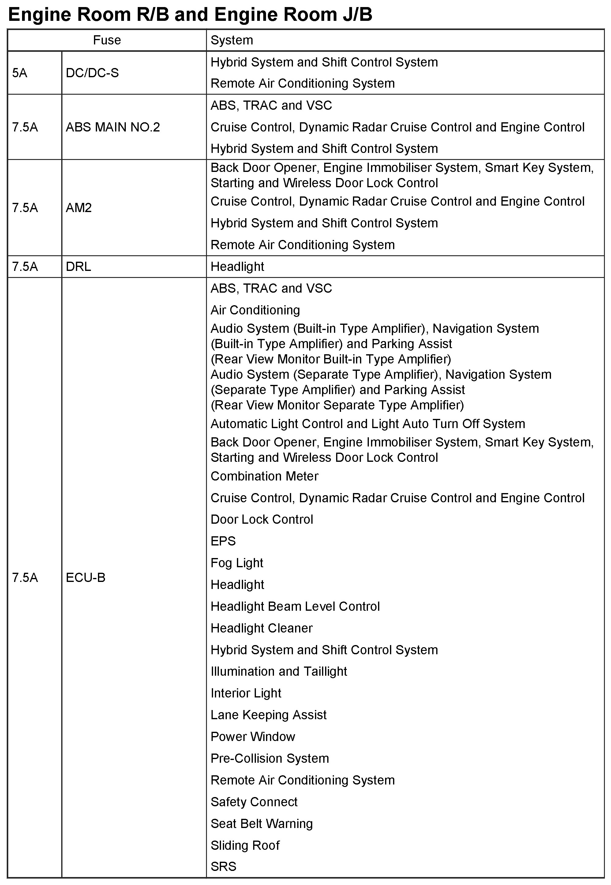 Engine Room R/B and Engine Room J/B:
