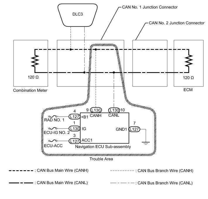 NG -- REPAIR OR REPLACE CAN BUS BRANCH WIRE OR CONNECTOR (NAVIGATION ECU SUB-ASSEMBLY BRANCH WIRE)