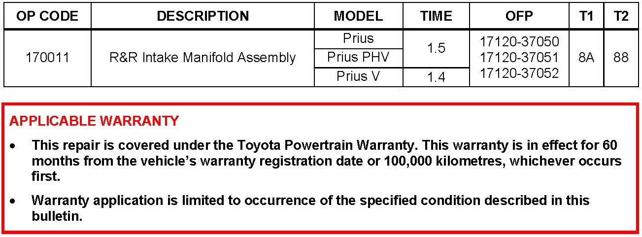 Some 2010 - 2012 vehicles equipped with a 2ZR-FXE engine may exhibit a MIL "ON" condition with Diagnostic Trouble Codes (DTCs) P2111 (Throttle Actuator Control System) and P0A0F (Engine Failed to Start) present when ambient temperatures are below -5°C (23°F). A new intake manifold assembly is now available to improve this condition.