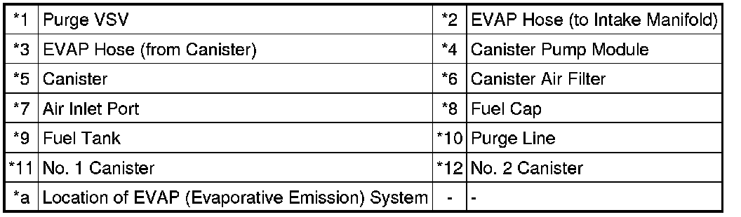 * *2: This result suggests that due to purge line blockage or purge VSV malfunction, the DTC was stored by the purge flow monitor while the engine was running, or that key-off monitor test result were nearly borderline values.