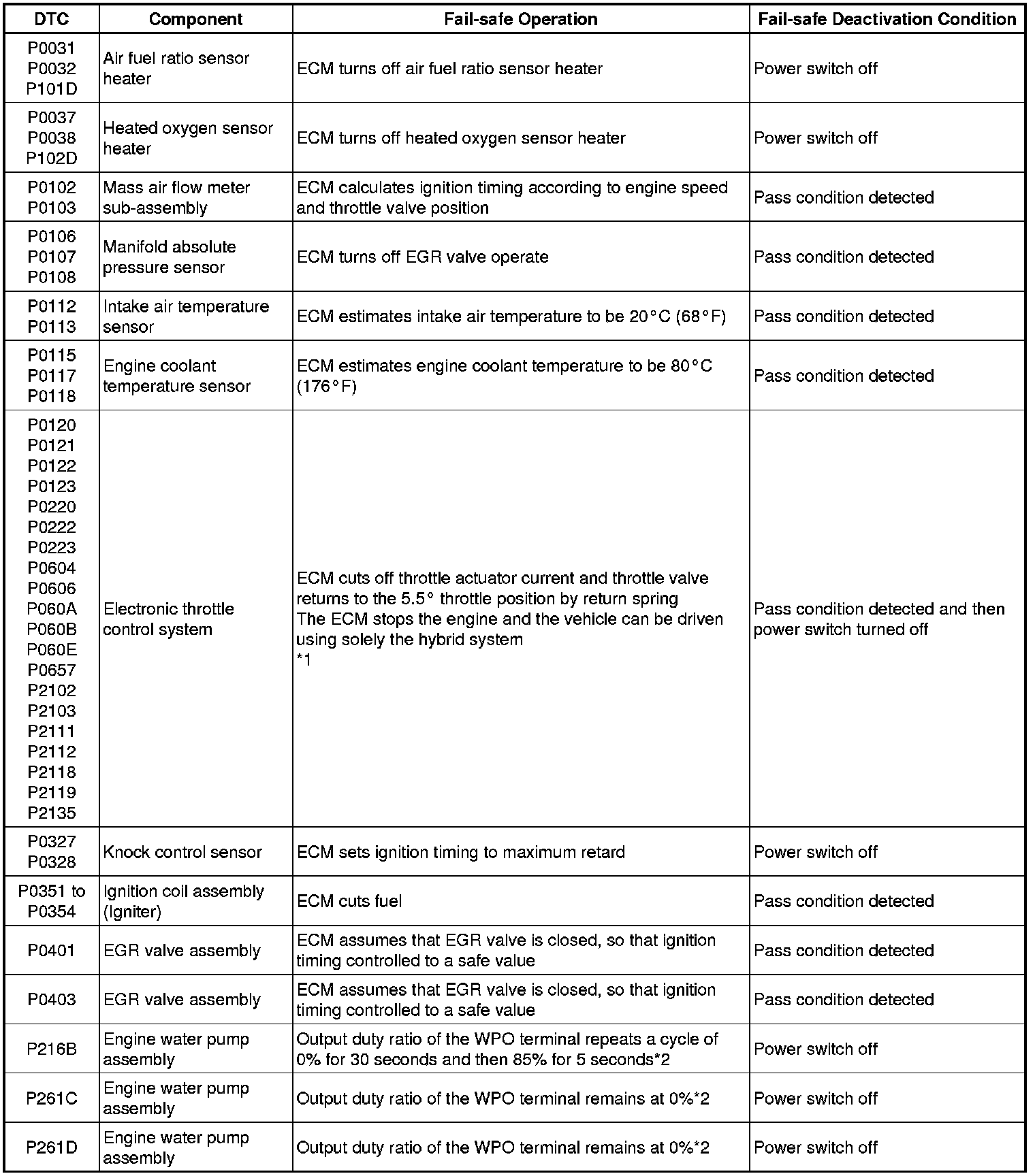 2ZR-FXE ENGINE CONTROL: SFI SYSTEM: FAIL-SAFE CHART