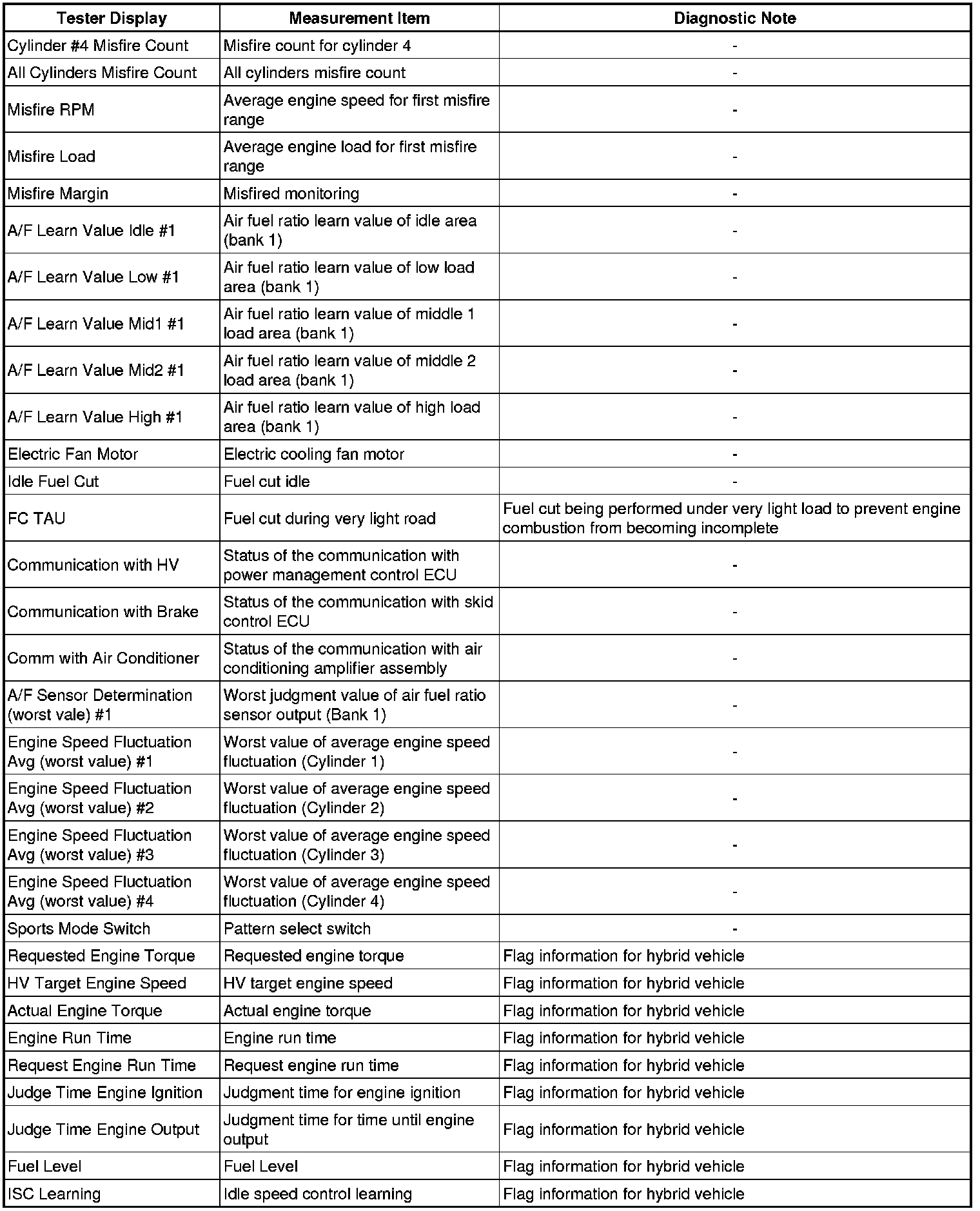 2ZR-FXE ENGINE CONTROL: SFI SYSTEM: FREEZE FRAME DATA