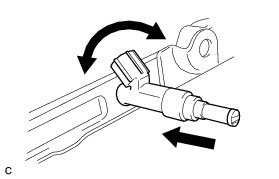 (c) While turning the fuel injector assembly left and right, install it onto the fuel delivery pipe sub-assembly.