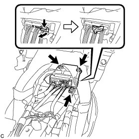 (c) Disconnect the connectors from the center airbag sensor assembly as shown in the illustration.