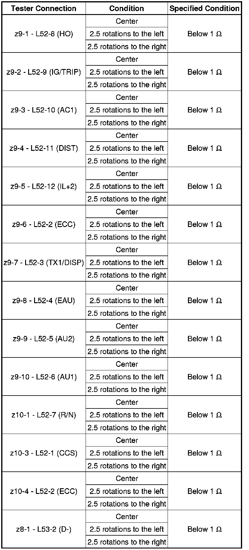 (1) Measure the resistance according to the value(s) in the table below.