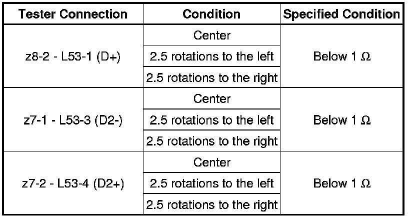 If the value is not within the specified range, replace the spiral cable.