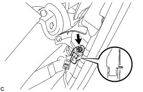 (c) Insert the pin (stopper) into the body hole to install the rear airbag sensor to the vehicle with the nut.
