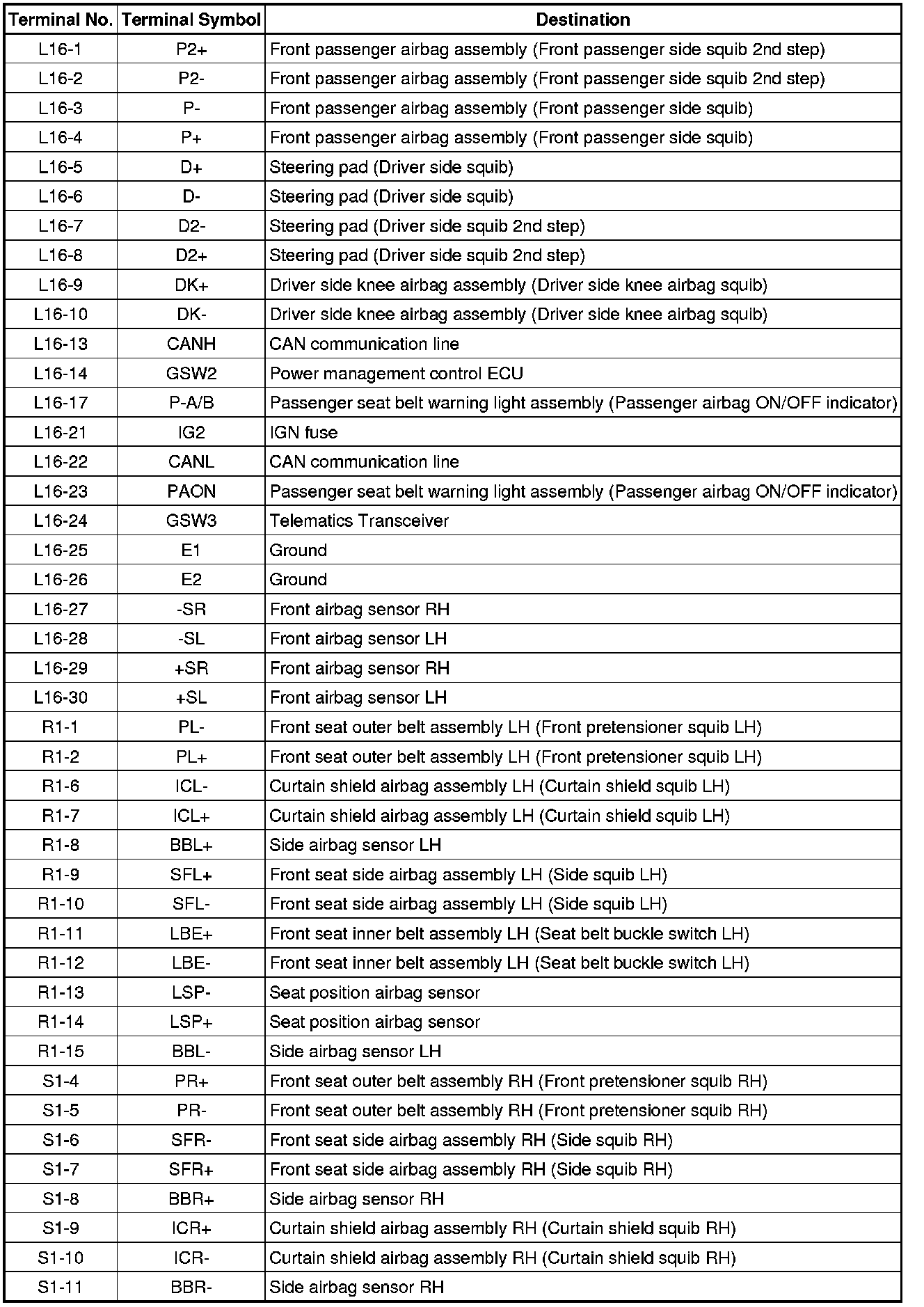 SUPPLEMENTAL RESTRAINT SYSTEMS: AIRBAG SYSTEM: TERMINALS OF ECU