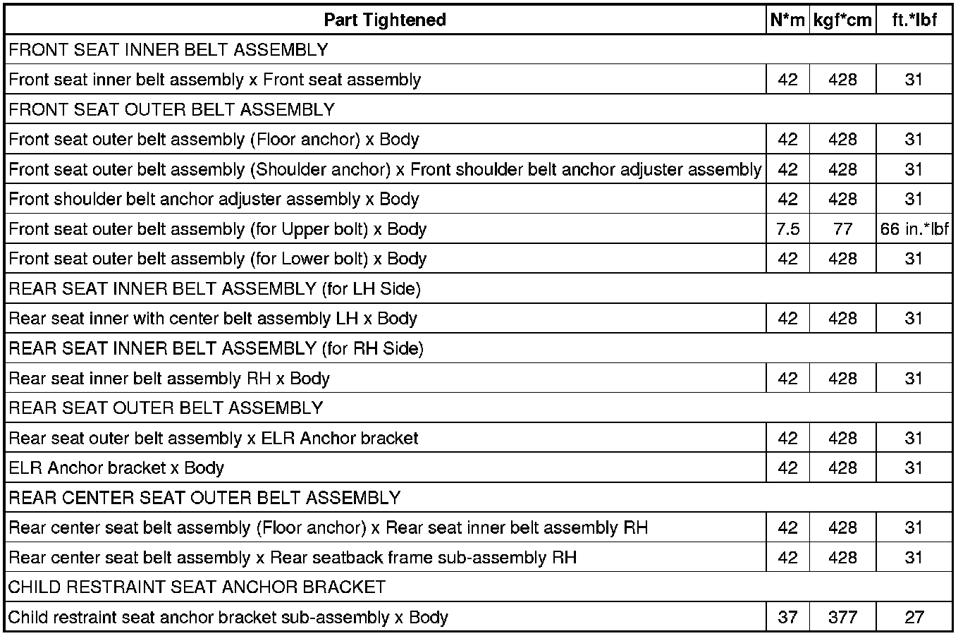 : TORQUE SPECIFICATIONS