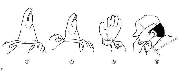 (3) Do not touch any bare cables that could be high voltage cables. If a cable must be touched or if accidental contact is possible, follow the following instructions: 1) wear insulated gloves and goggles, 2) measure the voltage between the cable and body ground using an electrical tester, and 3) insulate the cable using insulating tape.
