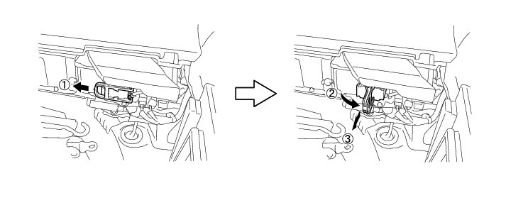 (6) Disconnect the cable from the negative (-) terminal of the auxiliary battery.