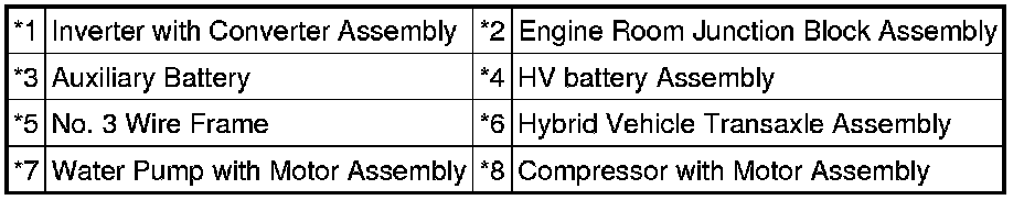 * After removing the HV battery, keep it away from water. Water may heat the battery, resulting in a fire.