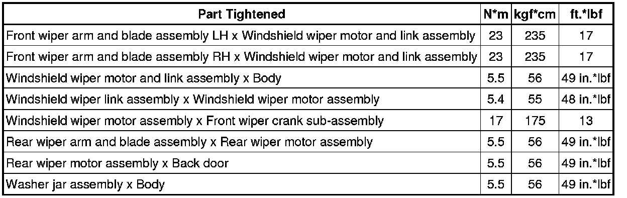 SPECIFICATIONS: WIPER / WASHER: TORQUE SPECIFICATIONS