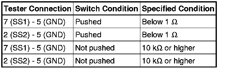 If the result is not as specified, replace the power switch.