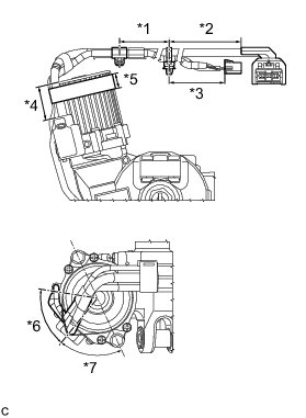 * Secure the wire harness to the power steering motor assembly within the range indicated by *6