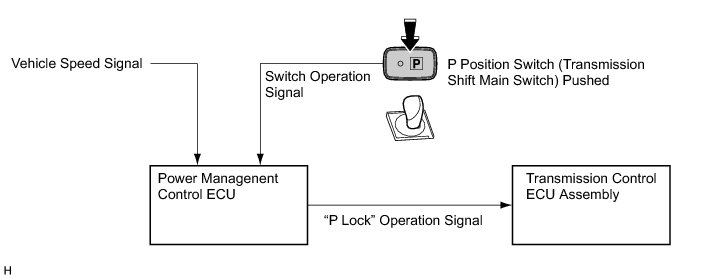 (1) When the P position switch (transmission shift main switch) is pushed to activate the parking lock, a signal is sent to the power management control ECU.