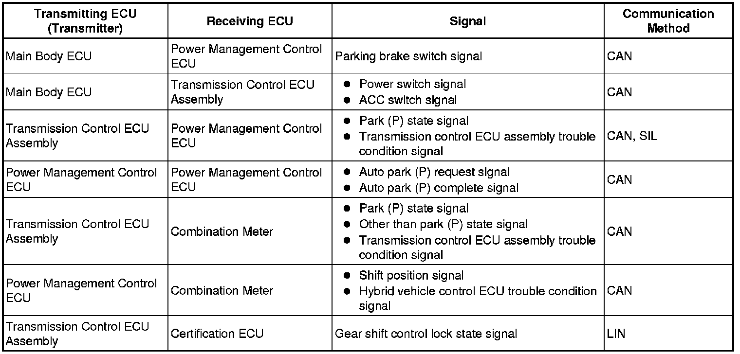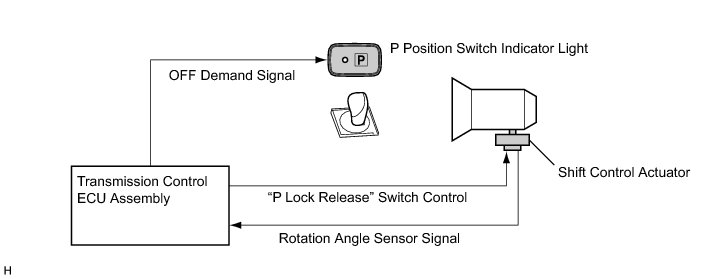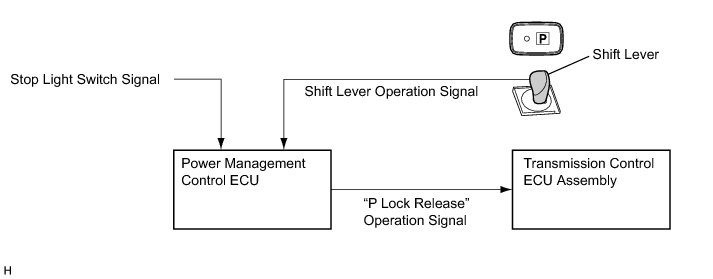 (2) This signal is then sent from the power management control ECU to the transmission control ECU assembly as a "P lock release" operation demand signal.