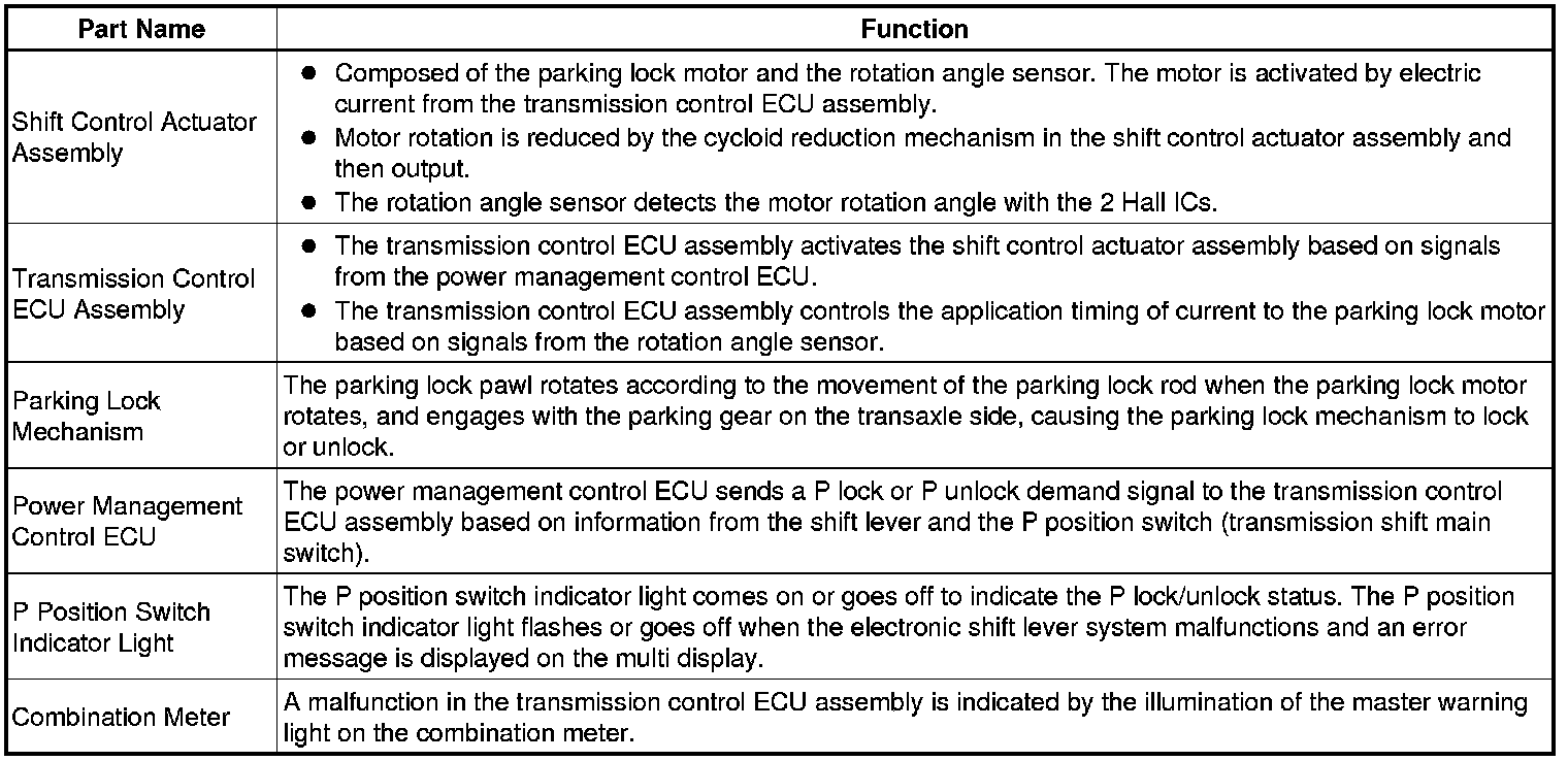 Based on this signal, and other information received from the power management control ECU, the transmission control ECU controls the shift control actuator and other parts of the system.