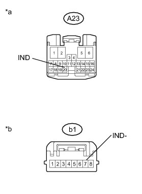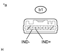 (b) Apply auxiliary battery voltage between terminals b1-6 (IND+) and b1-7 (IND-) and check the indicator light.