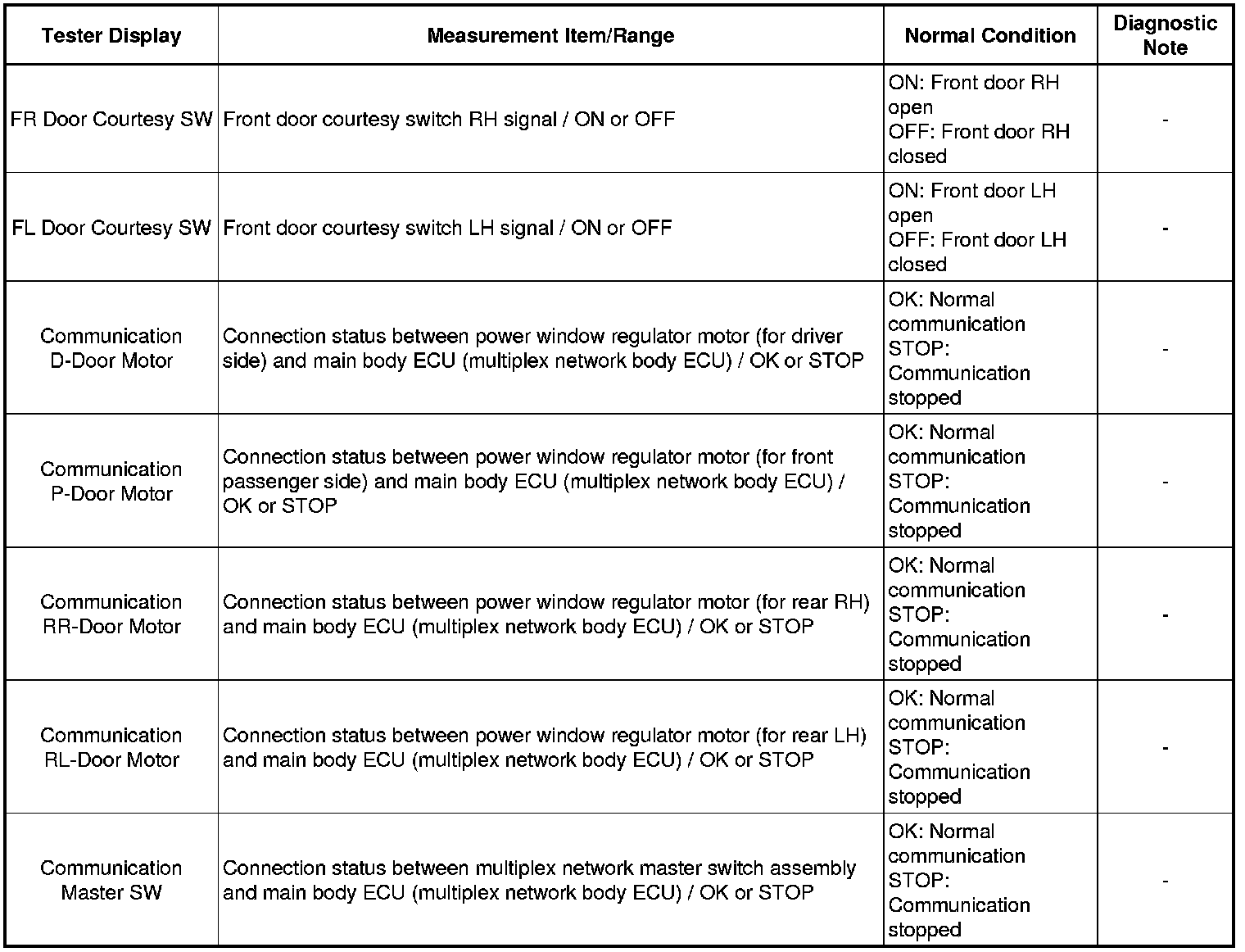 WINDOW / GLASS: POWER WINDOW CONTROL SYSTEM: DATA LIST / ACTIVE TEST