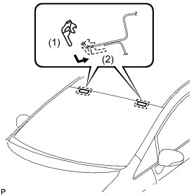 (b) Install 2 new No. 2 windshield glass stoppers onto the windshield glass, as shown in the illustration.