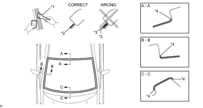 * Check the clearance between the vehicle body and windshield glass.