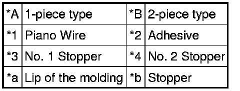 * When passing the piano wire below the 2 stoppers, make sure to cut the adhesive applied between the windshield glass sub-assembly and stoppers.