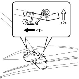 (b) Engage the 2 claws and install the washer nozzle sub-assembly as shown in the illustration.