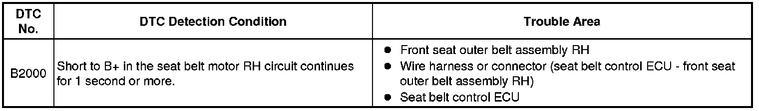 B2000 - Short to B+ in Seat Belt Motor RH Circuit