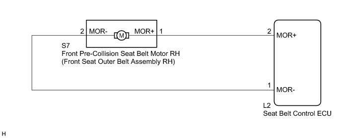 The seat belt control ECU receives information from the driving support ECU assembly using CAN communication and tightens the seat belt by operating the motor in the front seat outer belt assembly RH.