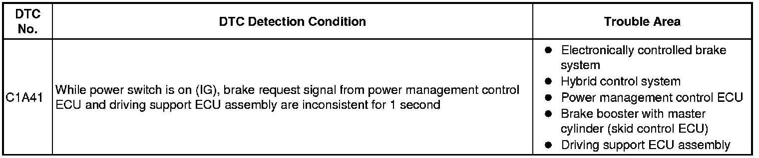 C1A41 - Brake Request Value Mismatch between ENG / EHV and Driving Support ECU