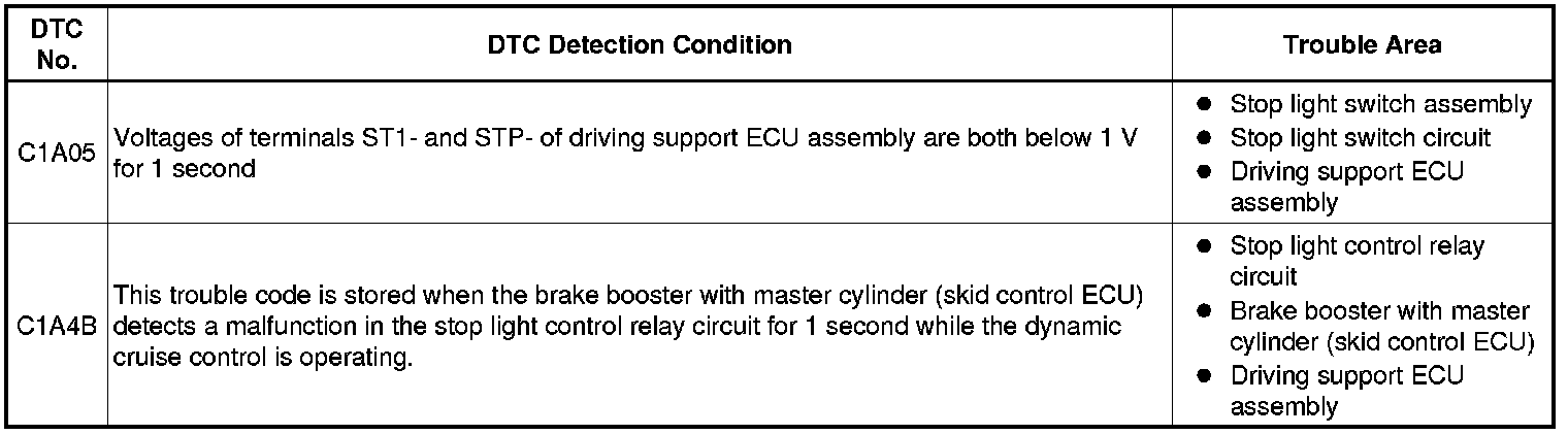 CRUISE CONTROL: DYNAMIC RADAR CRUISE CONTROL SYSTEM: C1A05, C1A4B: Stop Light Switch Circuit