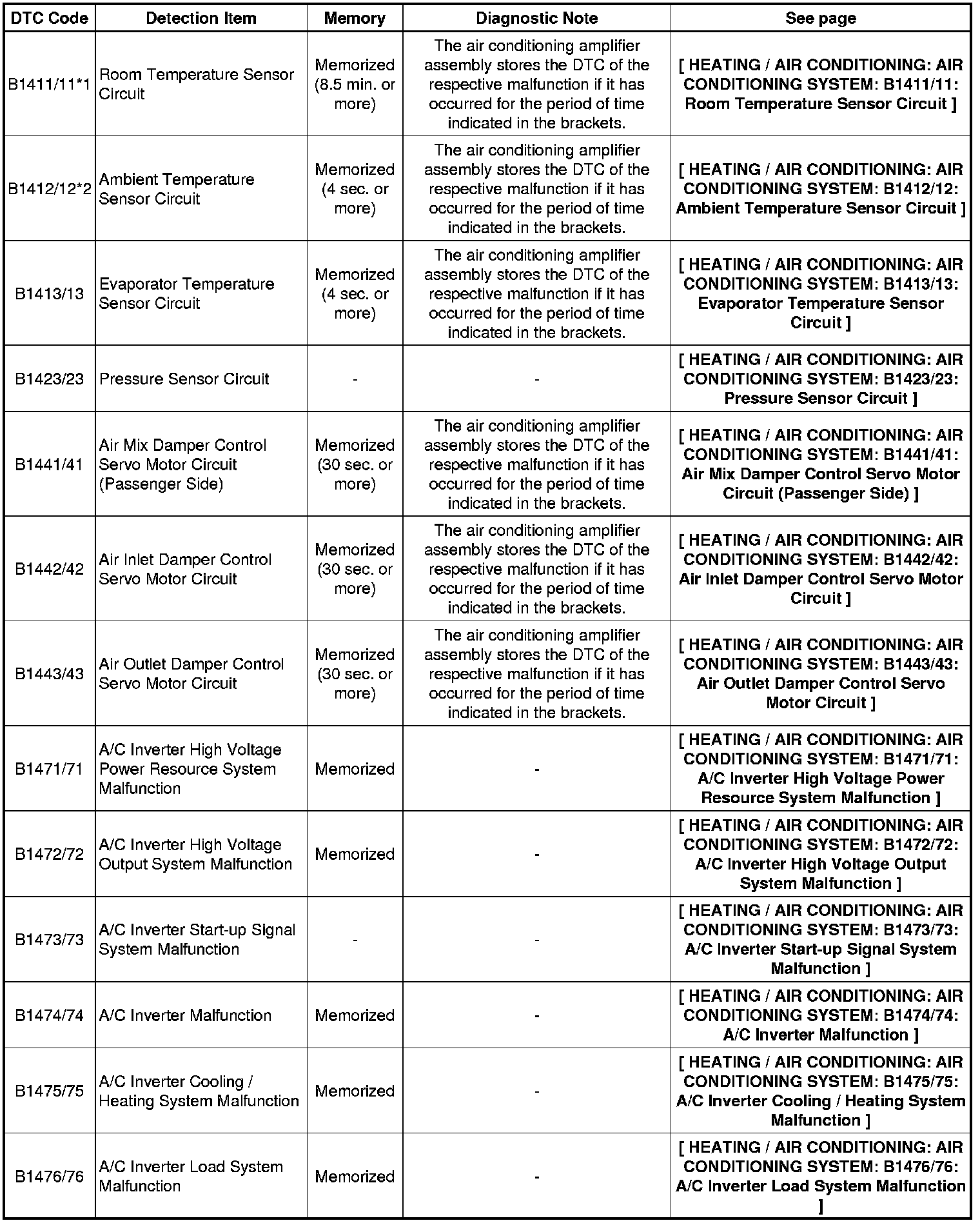 * *1: If the cabin temperature is approx. -18.6°C (-1.48°F) or lower, DTC B1411/11 may be output even though the system is normal.