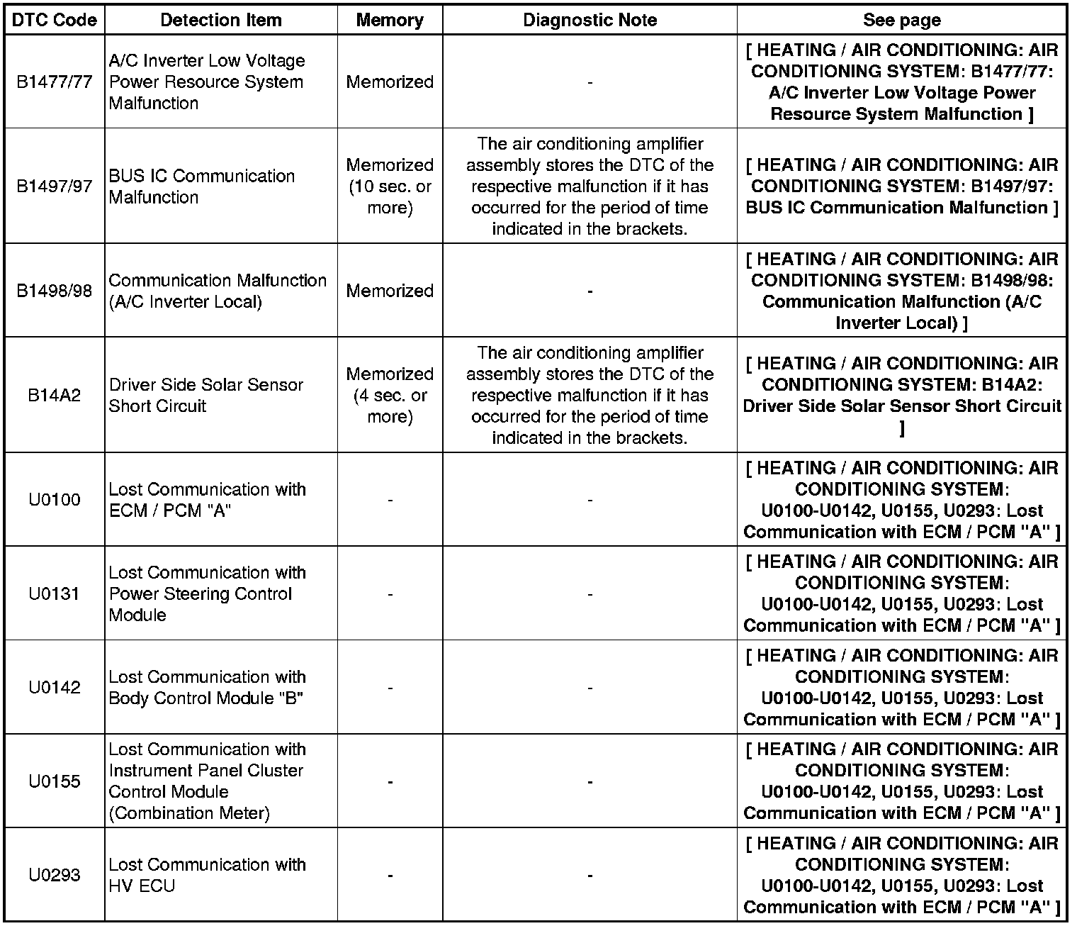 HEATING / AIR CONDITIONING: AIR CONDITIONING SYSTEM: DIAGNOSTIC TROUBLE CODE CHART