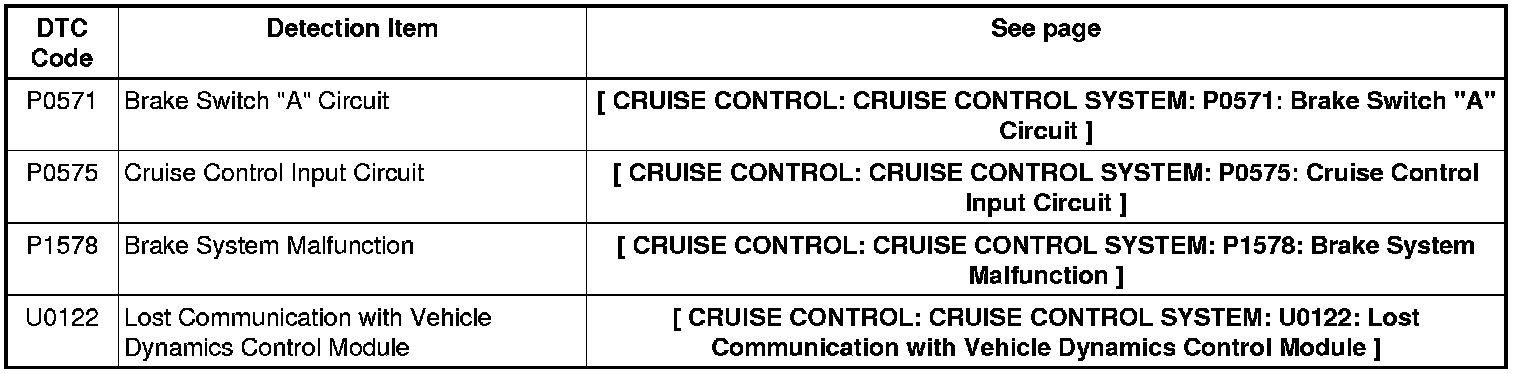 CRUISE CONTROL: CRUISE CONTROL SYSTEM: DIAGNOSTIC TROUBLE CODE CHART