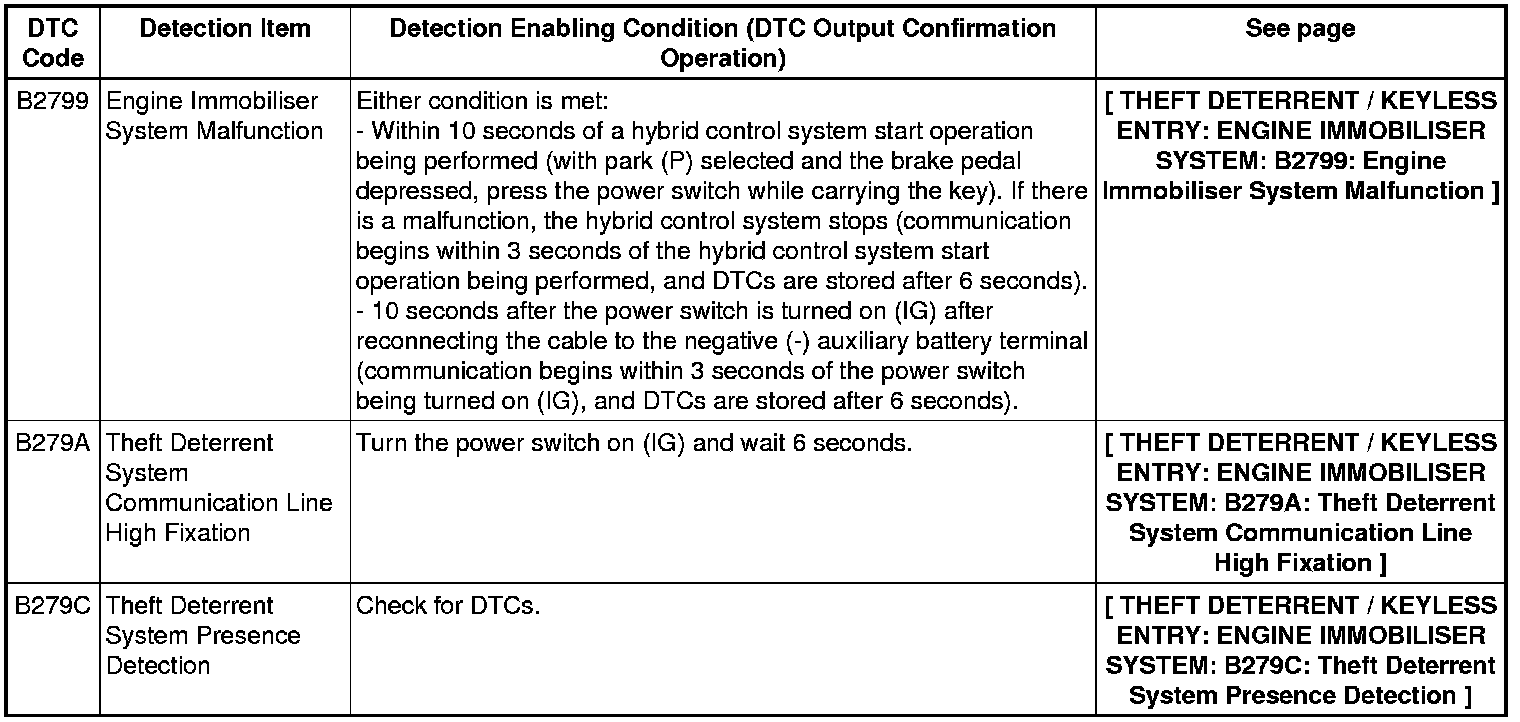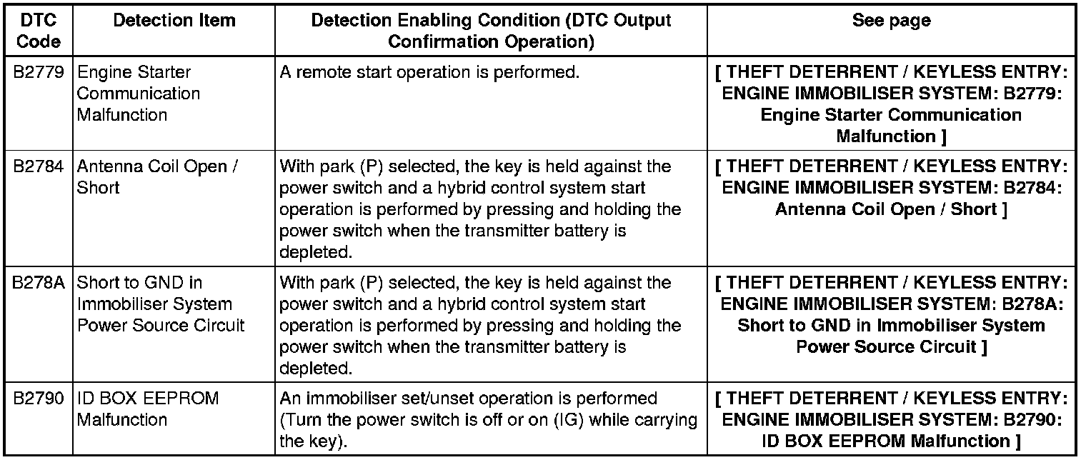 THEFT DETERRENT / KEYLESS ENTRY: ENGINE IMMOBILISER SYSTEM: DIAGNOSTIC TROUBLE CODE CHART